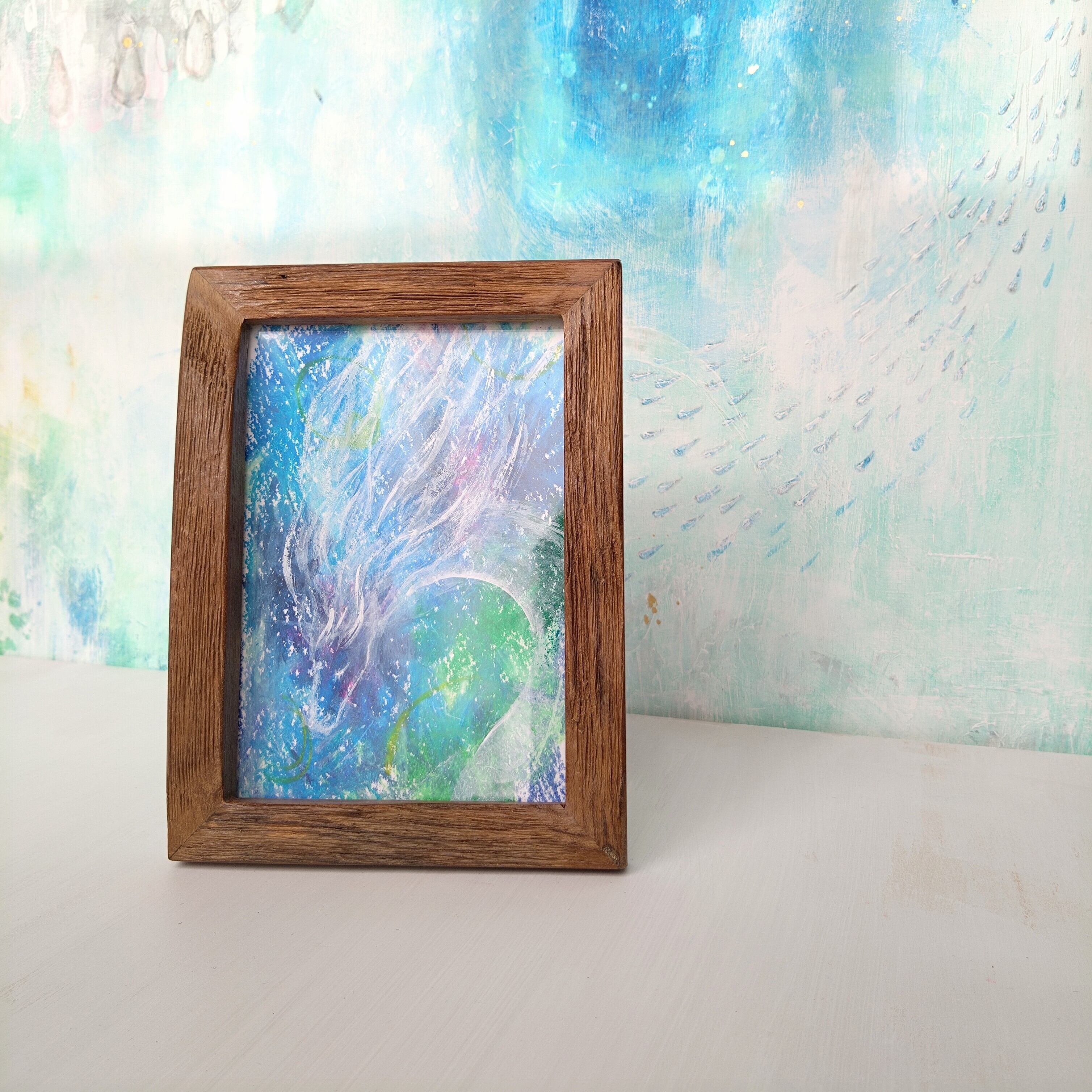 地のエネルギーを感じる古材のフレームに入れました。どちらもとても大事で、これからさらに調和していくと感じています。